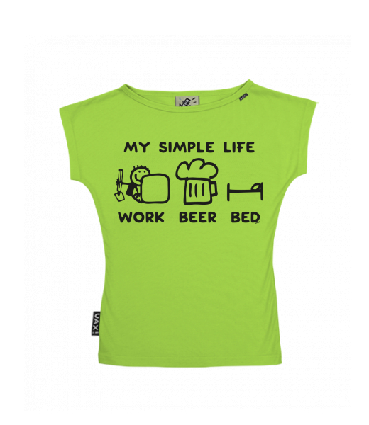 We make sustainable UAX clothing! - hand sewn in the Czech Republic uaxWomen uaxAll productsT-shirtsWOMEN'S BOAT NECK T-SHIRTdesign 1211 - MY SIMPLE LIFE WORK BEER BEDPARROT GREEN
