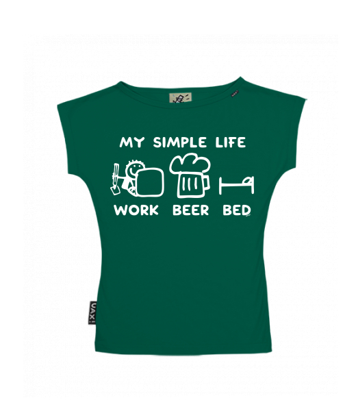 We make sustainable UAX clothing! - hand sewn in the Czech Republic uaxWomen uaxAll productsT-shirtsWOMEN'S BOAT NECK T-SHIRTdesign 1211 - MY SIMPLE LIFE WORK BEER BEDUNIVERSITY GREEN