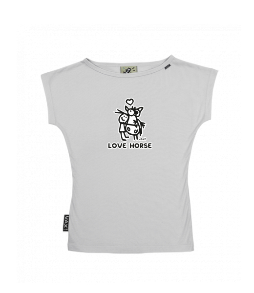 WOMEN'S BOAT NECK T-SHIRT for woman with design 1219 LOVE HORSE in color CEMENT