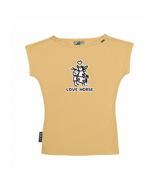 We make sustainable UAX clothing! - hand sewn in the Czech Republic uaxWomen uaxAll productsT-shirtsWOMEN'S BOAT NECK T-SHIRTdesign 1219 - LOVE HORSEMUSTARD