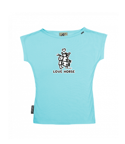 We make sustainable UAX clothing! - hand sewn in the Czech Republic uaxWomen uaxAll productsT-shirtsWOMEN'S BOAT NECK T-SHIRTdesign 1219 - LOVE HORSEPASTEL BLUE