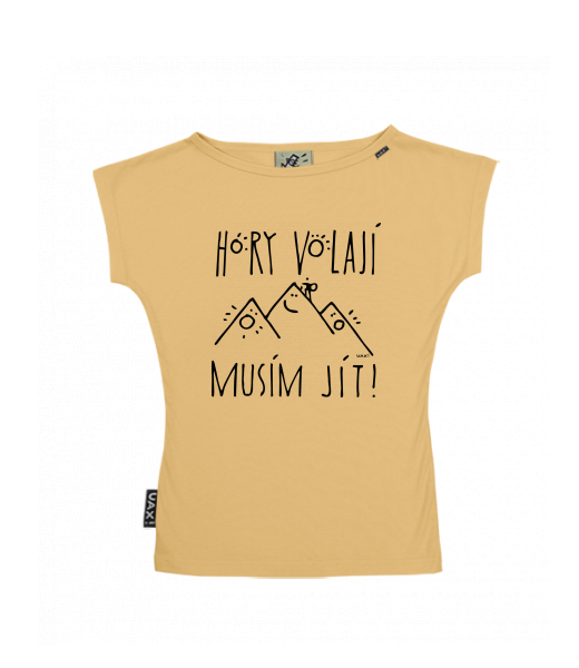 We make sustainable UAX clothing! - hand sewn in the Czech Republic uaxWomen uaxAll productsT-shirtsWOMEN'S BOAT NECK T-SHIRTdesign 1233 - HORY VOLAJÍ MUSÍM JÍTMUSTARD