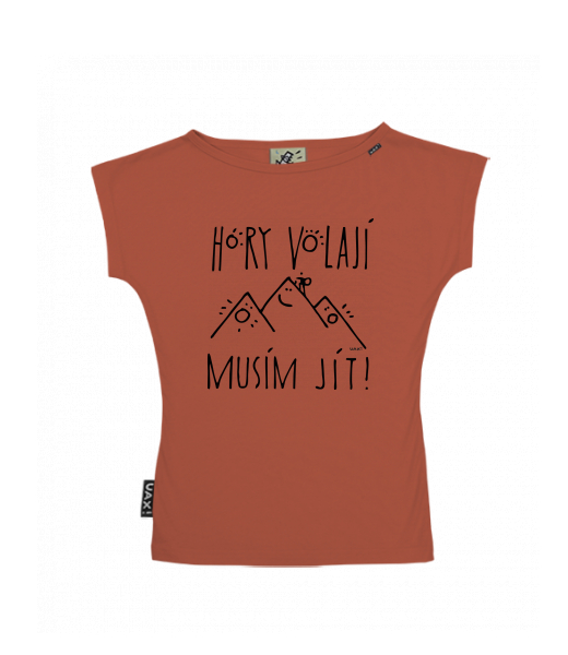 WOMEN'S BOAT NECK T-SHIRT for woman with design 1233 HORY VOLAJÍ MUSÍM JÍT in color TERRA