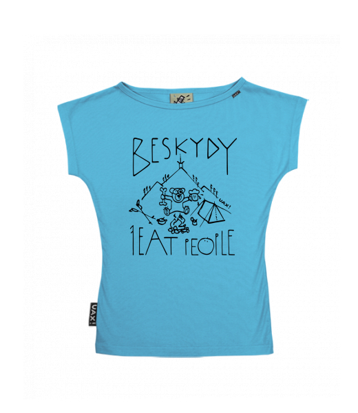 We make sustainable UAX clothing! - hand sewn in the Czech Republic uaxWomen uaxAll productsT-shirtsWOMEN'S BOAT NECK T-SHIRTdesign 1241 - I EAT PEOPLE BESKYDYBLUE ATOLL