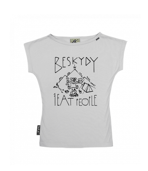 WOMEN'S BOAT NECK T-SHIRT for woman with design 1241 I EAT PEOPLE BESKYDY in color CEMENT