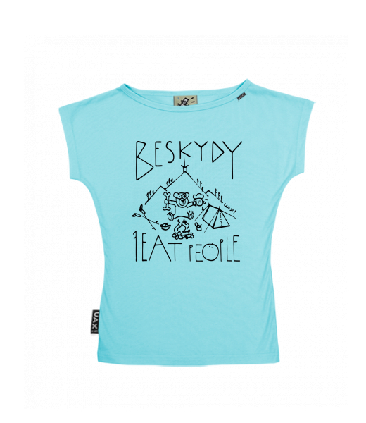We make sustainable UAX clothing! - hand sewn in the Czech Republic uaxWomen uaxAll productsT-shirtsWOMEN'S BOAT NECK T-SHIRTdesign 1241 - I EAT PEOPLE BESKYDYPASTEL BLUE