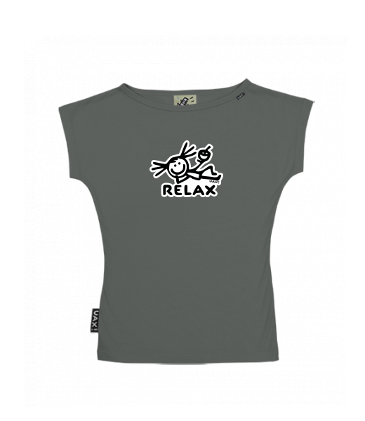 We make sustainable UAX clothing! - hand sewn in the Czech Republic uaxWomen uaxAll productsT-shirtsWOMEN'S BOAT NECK T-SHIRTdesign 1256 - RELAX GIRLDARK GRAY