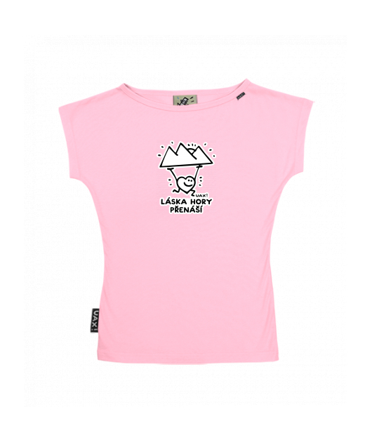 We make sustainable UAX clothing! - hand sewn in the Czech Republic uaxWomen uaxAll productsT-shirtsWOMEN'S BOAT NECK T-SHIRTdesign 1264 - LÁSKA HORY PŘENÁŠÍBABY PINK