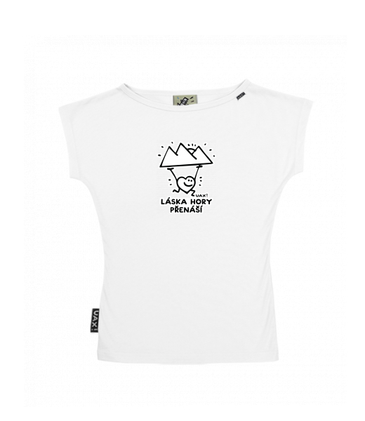 We make sustainable UAX clothing! - hand sewn in the Czech Republic uaxWomen uaxAll productsT-shirtsWOMEN'S BOAT NECK T-SHIRTdesign 1264 - LÁSKA HORY PŘENÁŠÍWHITE