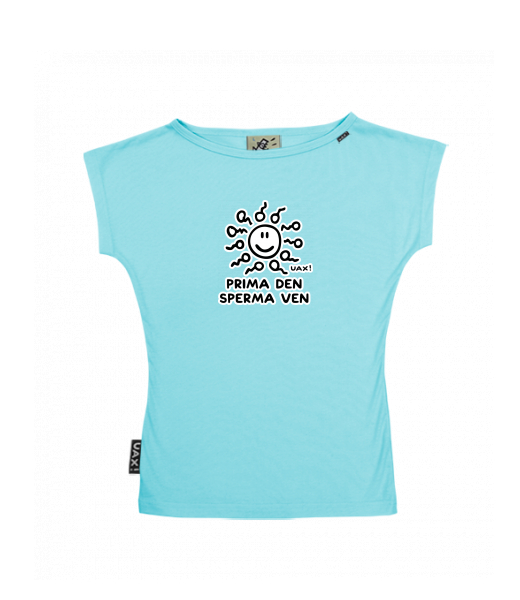 We make sustainable UAX clothing! - hand sewn in the Czech Republic uaxWomen uaxAll productsT-shirtsWOMEN'S BOAT NECK T-SHIRTdesign 1265 - PRIMA DEN SPERMA VENPASTEL BLUE