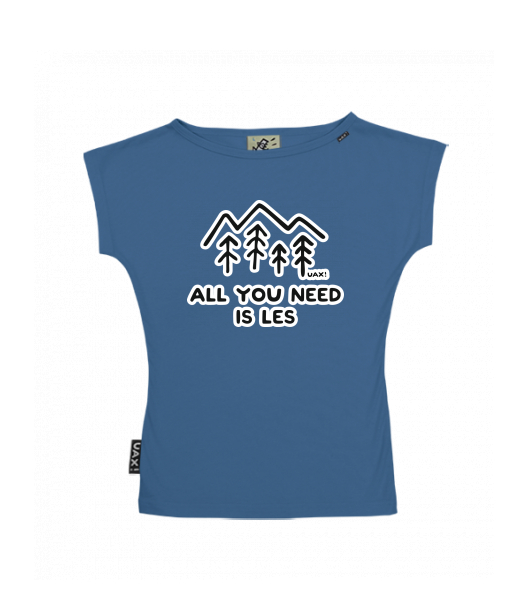 WOMEN'S BOAT NECK T-SHIRT for woman with design 1279 ALL YOU NEED IS LES in color MOONLIGHT BLUE