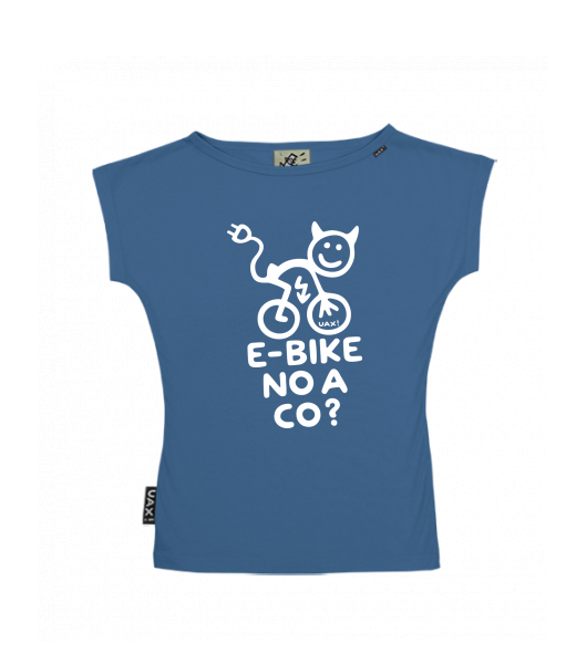We make sustainable UAX clothing! - hand sewn in the Czech Republic uaxWomen uaxAll productsT-shirtsWOMEN'S BOAT NECK T-SHIRTdesign 1291 - E-BIKE NO A CO?MOONLIGHT BLUE