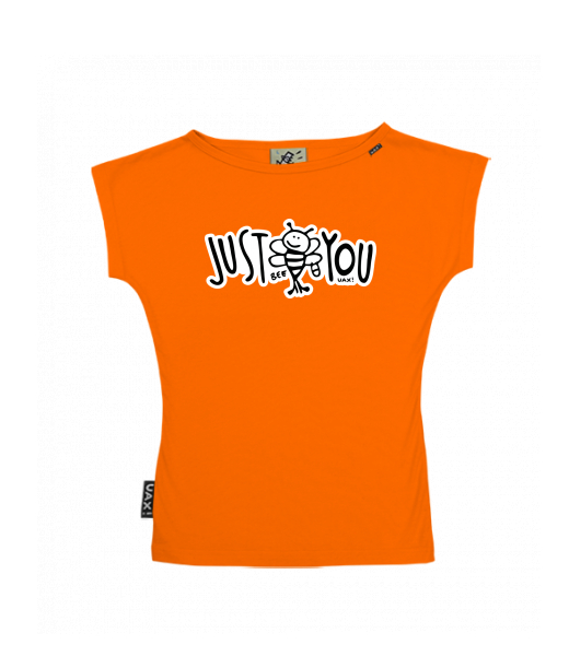 We make sustainable UAX clothing! - hand sewn in the Czech Republic uaxWomen uaxAll productsT-shirtsWOMEN'S BOAT NECK T-SHIRTdesign 1295 - BEE YOUSIGNAL ORANGE