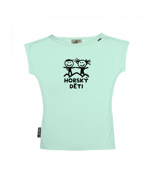 WOMEN'S BOAT NECK T-SHIRT for woman with design 1300 HORSKÝ DĚTI in color MINT