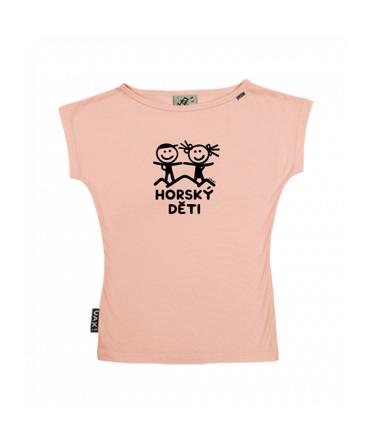 WOMEN'S BOAT NECK T-SHIRT for woman with design 1300 HORSKÝ DĚTI in color PEACH