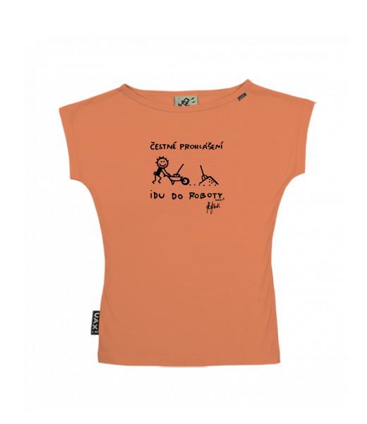 WOMEN'S BOAT NECK T-SHIRT for woman with design 1303 ČESTNÉ PROHLÁŠENÍ IDU DO ROBOTY in color MANDARIAN ORANGE