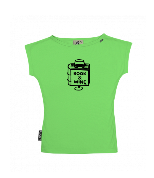 WOMEN'S BOAT NECK T-SHIRT for woman with design 1322 BOOK AND WINE in color APPLE