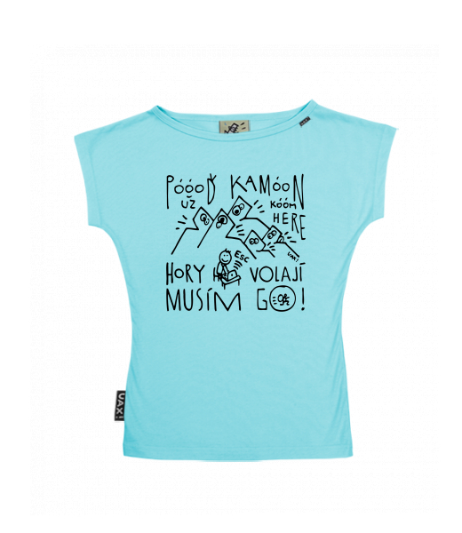 We make sustainable UAX clothing! - hand sewn in the Czech Republic uaxWomen uaxAll productsT-shirtsWOMEN'S BOAT NECK T-SHIRTdesign 1368 - POOOĎ KAMOON HORY MUSÍM JÍT GOPASTEL BLUE