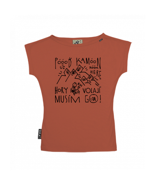 WOMEN'S BOAT NECK T-SHIRT for woman with design 1368 POOOĎ KAMOON HORY MUSÍM JÍT GO in color TERRA