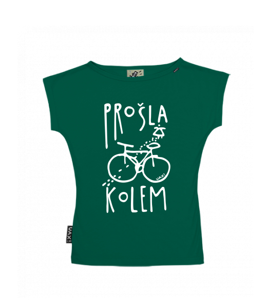 WOMEN'S BOAT NECK T-SHIRT for woman with design 1395 PROŠLA KOLEM in color UNIVERSITY GREEN