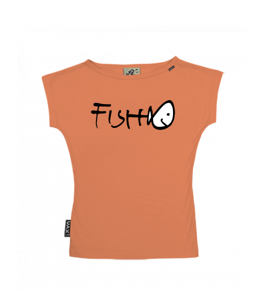 WOMEN'S BOAT NECK T-SHIRT for woman with design 357 FISH in color MANDARIAN ORANGE