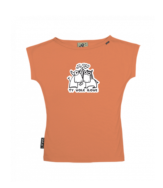 We make sustainable UAX clothing! - hand sewn in the Czech Republic uaxWomen uaxAll productsT-shirtsWOMEN'S BOAT NECK T-SHIRTdesign 1089 - TY VOLE I LOVEMANDARIAN ORANGE