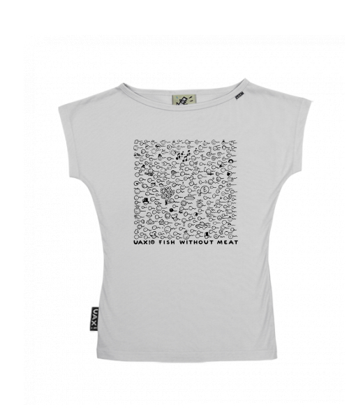 Products of cotton sewn and printed in the Czech Republic under the registered trademark "UAX fish without meat"
