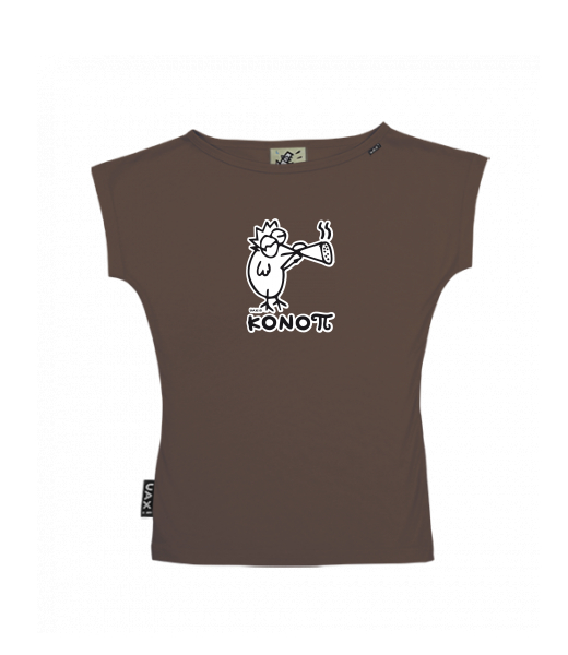WOMEN'S BOAT NECK T-SHIRT for woman with design 1094 KONOPI in color CHESTNUT