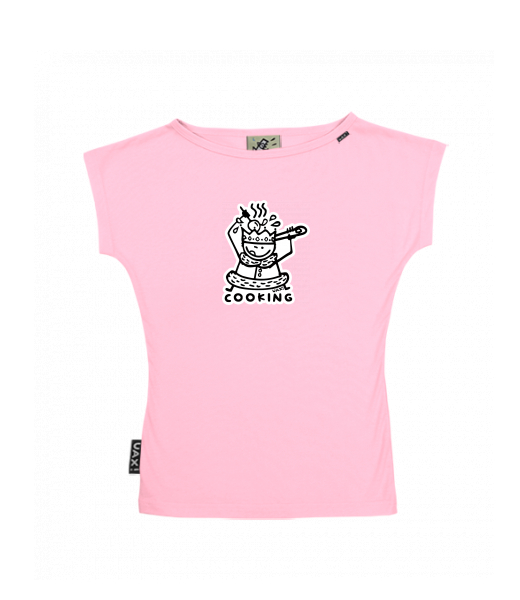 WOMEN'S BOAT NECK T-SHIRT for woman with design 1117 COOKING in color BABY PINK