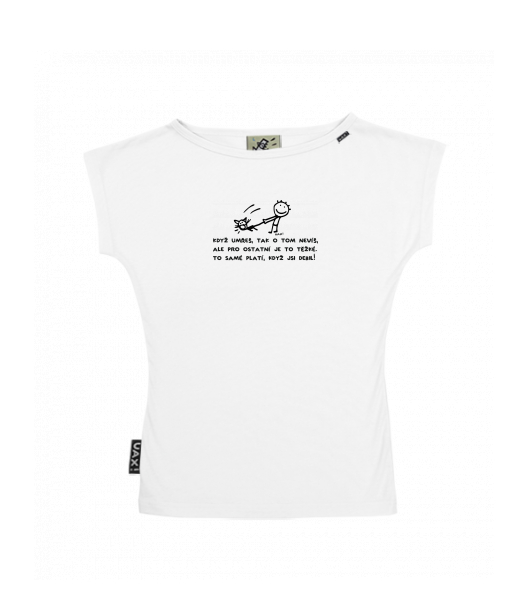 WOMEN'S BOAT NECK T-SHIRT for woman with design 1131 JE TO TĚŽKÉ in color WHITE