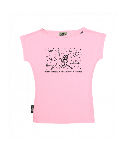 We make sustainable UAX clothing! - hand sewn in the Czech Republic uaxWomen uaxAll productsT-shirtsWOMEN'S BOAT NECK T-SHIRTdesign 1156 - DON'T PANIC GALAXYBABY PINK