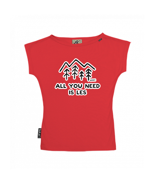 We make sustainable UAX clothing! - hand sewn in the Czech Republic uaxWomen uaxAll productsT-shirtsWOMEN'S BOAT NECK T-SHIRTdesign 1279 - ALL YOU NEED IS LESRED
