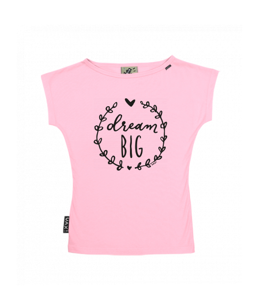 WOMEN'S BOAT NECK T-SHIRT for woman with design 1286 DREAM BIG in color BABY PINK