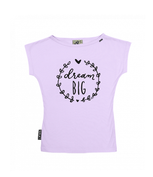 WOMEN'S BOAT NECK T-SHIRT for woman with design 1286 DREAM BIG in color LAVENDER