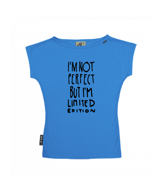 We make sustainable UAX clothing! - hand sewn in the Czech Republic uaxWomen uaxAll productsT-shirtsWOMEN'S BOAT NECK T-SHIRTdesign 1289 - IM NOT PERFECTCAPRI BLUE