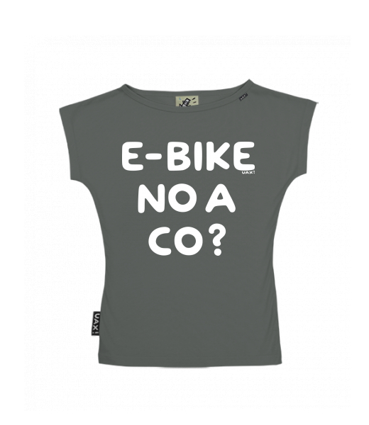 We make sustainable UAX clothing! - hand sewn in the Czech Republic uaxWomen uaxAll productsT-shirtsWOMEN'S BOAT NECK T-SHIRTdesign 1292 - E-BIKE NO A CO?DARK GRAY