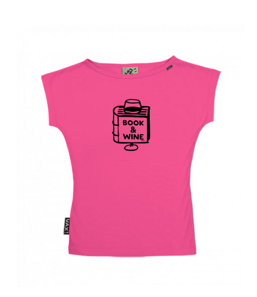 We make sustainable UAX clothing! - hand sewn in the Czech Republic uaxWomen uaxAll productsT-shirtsWOMEN'S BOAT NECK T-SHIRTdesign 1322 - BOOK AND WINEINDIAN LILA