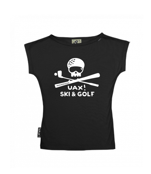 We make sustainable UAX clothing! - hand sewn in the Czech Republic uaxWomen uaxAll productsT-shirtsWOMEN'S BOAT NECK T-SHIRTdesign 1339 - SKI AND GOLFBLACK