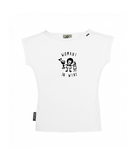 WOMEN'S BOAT NECK T-SHIRT for woman with design 1347 WOMAN IN WINE 2 in color WHITE