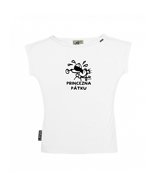 We make sustainable UAX clothing! - hand sewn in the Czech Republic uaxWomen uaxAll productsT-shirtsWOMEN'S BOAT NECK T-SHIRTdesign 1349 - PRINCEZNA PÁTKUWHITE