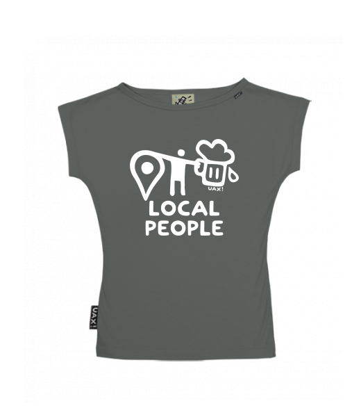 We make sustainable UAX clothing! - hand sewn in the Czech Republic uaxWomen uaxAll productsT-shirtsWOMEN'S BOAT NECK T-SHIRTdesign 1360 - LOCAL PEOPLE BIGDARK GRAY