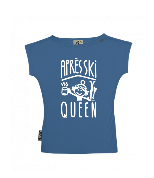 WOMEN'S BOAT NECK T-SHIRT for woman with design 1371 APRÉS SKI QUEEN in color MOONLIGHT BLUE