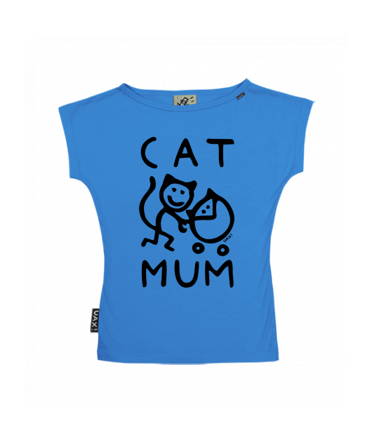 We make sustainable UAX clothing! - hand sewn in the Czech Republic uaxWomen uaxAll productsT-shirtsWOMEN'S BOAT NECK T-SHIRTdesign 1375 - CAT MUMCAPRI BLUE