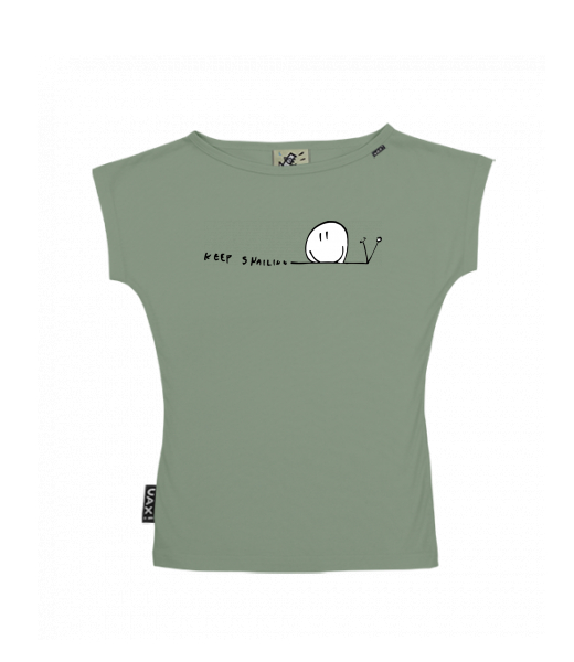 We make sustainable UAX clothing! - hand sewn in the Czech Republic uaxWomen uaxAll productsT-shirtsWOMEN'S BOAT NECK T-SHIRTdesign 249 - KEEP SNAILINGOLIVA