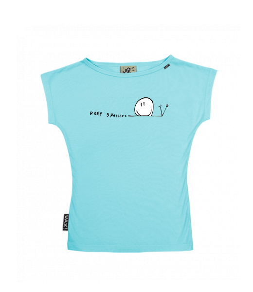 We make sustainable UAX clothing! - hand sewn in the Czech Republic uaxWomen uaxAll productsT-shirtsWOMEN'S BOAT NECK T-SHIRTdesign 249 - KEEP SNAILINGPASTEL BLUE