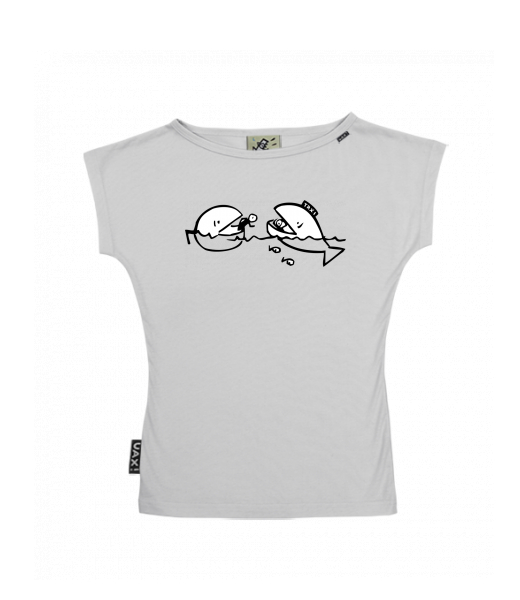 WOMEN'S BOAT NECK T-SHIRT for woman with design 385 FISH TAXI in color CEMENT