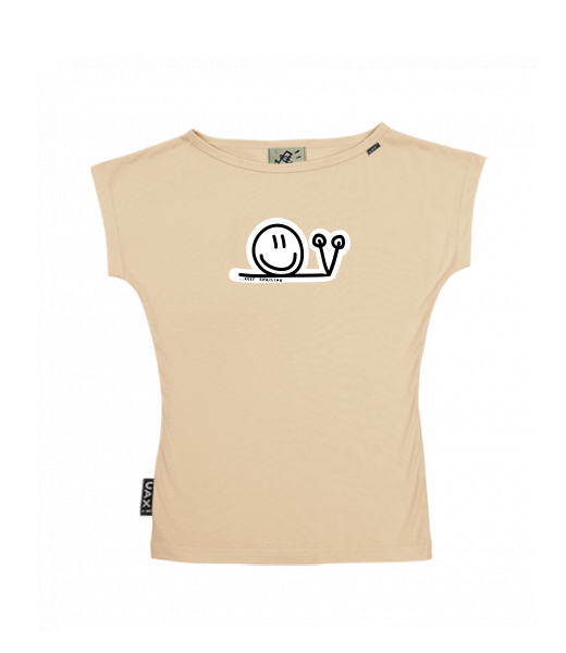 We make sustainable UAX clothing! - hand sewn in the Czech Republic uaxWomen uaxAll productsT-shirtsWOMEN'S BOAT NECK T-SHIRTdesign 420 - KEEP SNAILCARAMEL