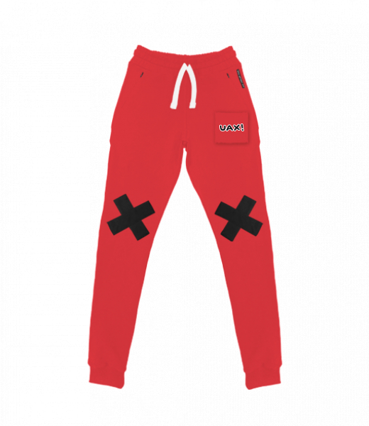 Women's tracksuits with the original UAX! print in a slim fit with black crosses on the knees. The print is printed on a piece of fabric and sewn onto the leg. The sweatpants have pockets closed with a zipper. Women's SLIM CROSS sweatpants are made of elastic material, which allows for very comfortable wearing without restricting movement. The material is high-quality, colorfast and still holds its shape. Mix & Match - Choose from many original prints.