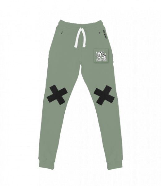 Women's tracksuits with the original UAX! print in a slim fit with black crosses on the knees. The print is printed on a piece of fabric and sewn onto the leg. The sweatpants have pockets closed with a zipper. Women's SLIM CROSS sweatpants are made of elastic material, which allows for very comfortable wearing without restricting movement. The material is high-quality, colorfast and still holds its shape. Mix & Match - Choose from many original prints.