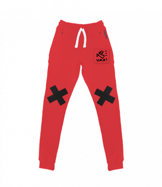 Women's tracksuits with the original UAX! print in a slim fit with black crosses on the knees. The print is printed on a piece of fabric and sewn onto the leg. The sweatpants have pockets closed with a zipper. Women's SLIM CROSS sweatpants are made of elastic material, which allows for very comfortable wearing without restricting movement. The material is high-quality, colorfast and still holds its shape. Mix & Match - Choose from many original prints.